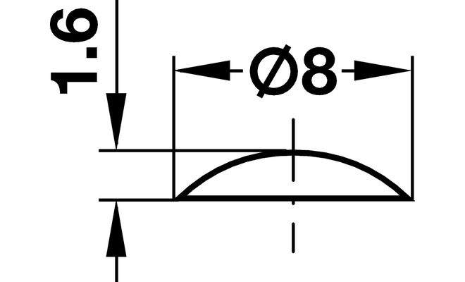 Відбійник меблевий, виготовлений з пластику (поліуретан). Забарвлення прозоре. Тип монтажу: склеювання. Стійкий до ультрафіолетового випромінювання. Діаметр 8мм. Висота 1,6мм. Слугуватиме довго та надійно завдяки високій якості використаних матеріалів.