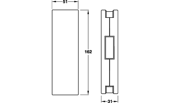 Технічні характеристики Відповідна частина до замка-накладки, нержавіюча сталь 162х51х31 мм 98100420