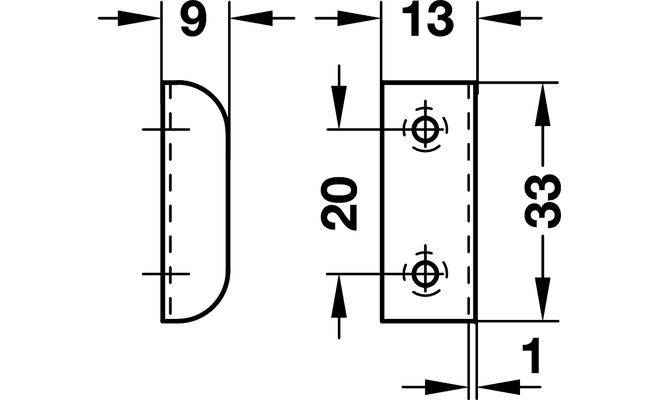Технічні характеристики Відповідна планка для замка SYMO сталева нікельований 9 х 13 х 33 мм під шуруп 23940703