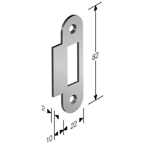 Планка замка, з виступом. Універсальна, права чи ліва по DIN. Матеріал: сталь. Покриття/колір: чорний матовий. Розміри планки замка: Висота: 82 мм. Ширина: 22 мм. Товщина: 2 мм. Виступ: 12 мм. Розмір отвору під ригель замка: 12 х 34 мм.