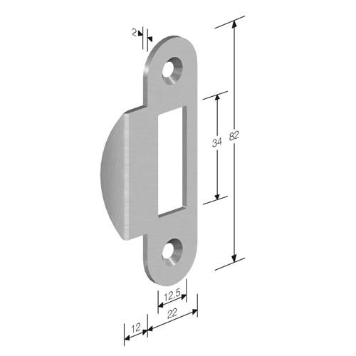 Планка замка, з виступом. Універсальна, права чи ліва по DIN.Матеріал: сталь. Покриття / колір: бронза стара. Розміри планки замка: Висота: 82 мм. Ширина: 22 мм. Товщина: 2 мм. Виступ: 12 мм. Розмір отвору під ригель замка: 12.5 х 34 мм.