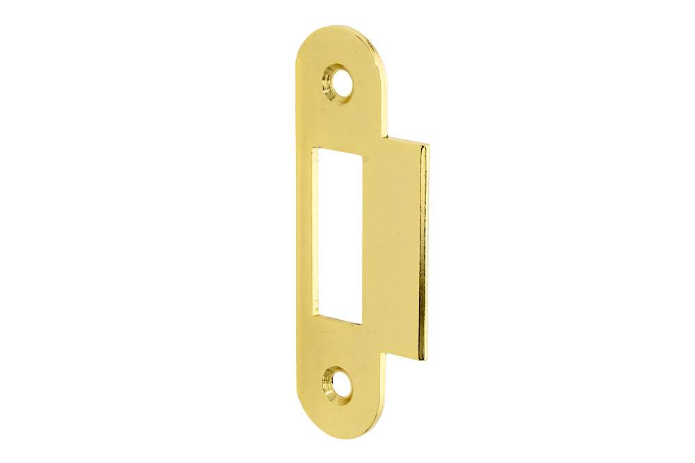 Планка замка, з виступом. Універсальна, права чи ліва по DIN. Матеріал: сталь. Покриття/колір: латунь полірована. Розміри планки замка: Висота: 82 мм. Ширина: 22 мм. Товщина: 2 мм. Виступ: 12 мм. Розмір отвору під ригель замка: 12 х 34 мм.
