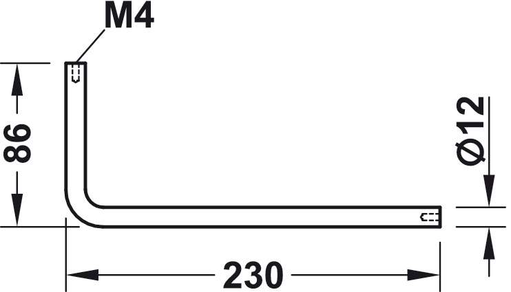 Гардеробний кронштейн круглого січення, для монтажу під полицею і до задньої стінки, виготовлений з хромованої сталі, з матовою поверхнею. Розміри кронштейну, довжина/висота/діаметр - 230/86/12 мм.