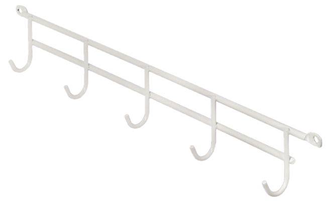 Вішак на 5 гачків, виготовлений зі сталі з пластмасовим покриттям білого кольору. Розмір вішака: ширина 290 мм, глибина 24 мм, висота 40 мм. Монтаж виконується шляхом прикручування гвинтами.