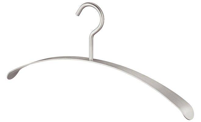 Вішак для одягу з фіксованим гачком, для підвішування на гардеробній штанзі діаметром до 40 мм. Вішак виготовлений з нержавіючої сталі, класу якості 1.4301 з матовою поверхнею. Розміри вішака, ширина/висота/січення - 457/194/20 x 3 мм.