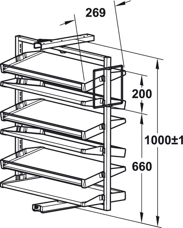Висувна поворотна на 180 градусів рама в шафу для 20 пар взуття з полицями w 800 мм h 1000 мм d 365 мм сталь чорний 80622400
