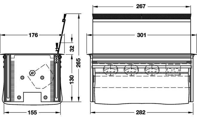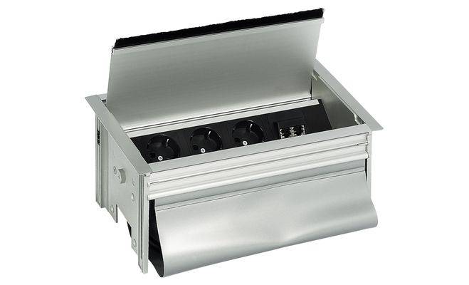 Технічні характеристики Висувний блок на 3 розетки + 2 роз'єми RJ45, алюміній срібний, з втопленим блоком електропостачання 82666014