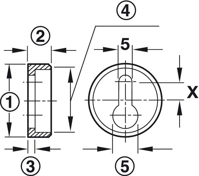 Підвіс для врізання, у вигляді замкової щілини виготовлений з пластмаси білого кольору. Розміри підвісу: зовнішній діаметр/внутрішній діаметр/глибина/товщина/ширина замкової щілини - 30/27/9,5/2,5/10 мм.