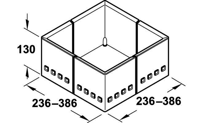 Вставка для зберігання контейнерів їжі. Застосовується для передніх і внутрішніх розширень. Гумові отвори запобігають ковзанню. Комплект складається з 4-х предметів. Виготовлена з пластику, висотою 130 м м. Колір по кутах сірий, середина – напівпрозора, біла.