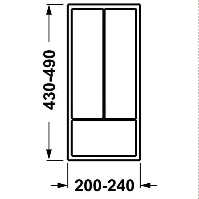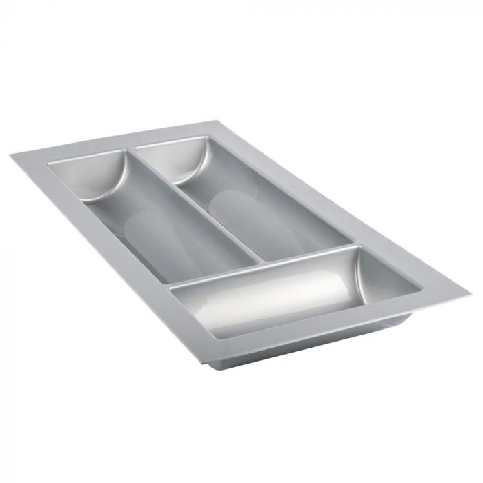 Вставка для столових приборів, для самостійного розкрою, матеріал: пластмаса, колір: сріблясто-сірий, товщина матеріалу 2.5 мм, висота 50 мм, довжина може вкорочуватись, 490–430 мм, для номінальної довжини 500 мм, ширина 200–240 мм, для ширини корпуса 300 мм,