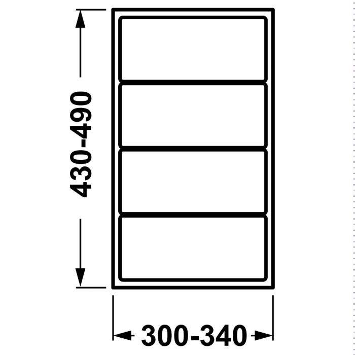 Вставка для столових приборів, для самостійного розкрою, матеріал: пластмаса, колір: сріблясто-сірий, товщина матеріалу 2.5 мм, висота 50 мм, довжина може вкорочуватись, 490–430 мм, для номінальної довжини 500 мм, ширина 300–340 мм, для ширини корпуса 400 мм,