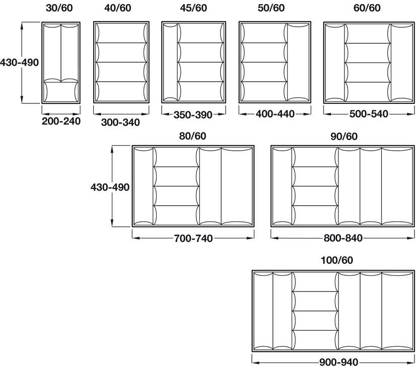 Технічні характеристики Вставка для столових приборів для ящика 400 мм білий 340 х 485 х 50 мм 55653740