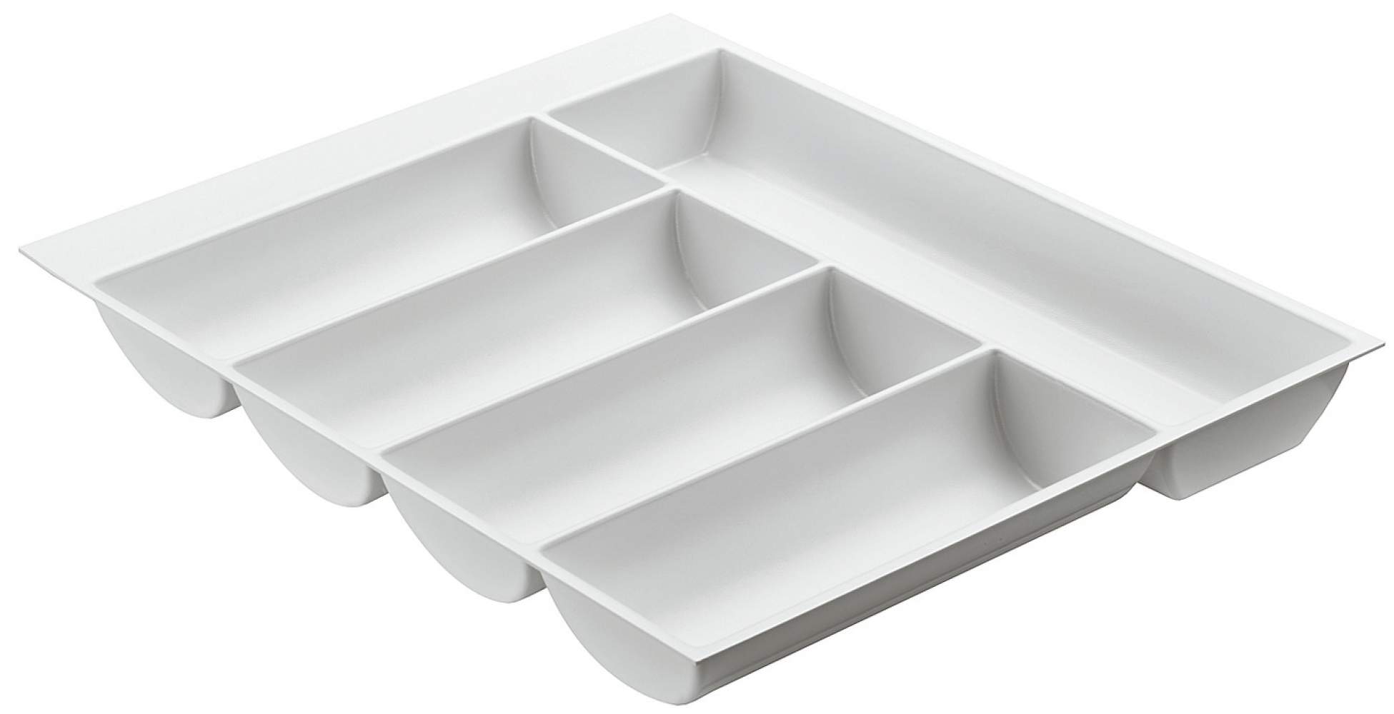 Вставка для столових приборів MOOVIT. Може застосовуватись в комбінації із деталями із деревини. Виготовлено із пластмаси товщиною 2,5 мм. Номінальна довжина 500 мм і висота 50 мм. Ширина корпуса 300 мм, білого кольору. Товщина бокової стінки 16 мм.