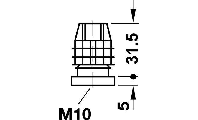 Технічні характеристики Вставка-ніжка М10 для чотиригранної труби 30х30 мм пластмаса чорний 65211636