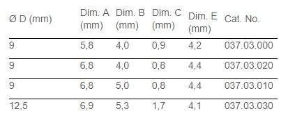 Опис Вставна втулка для кріплення ручок до скляних дверей пластикова d 9 мм A-6,8 B-4,0 C-0,8 E-4,4 мм 03703020