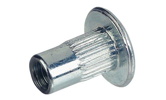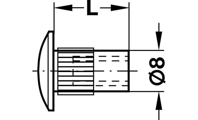 Втулка, з плоскоконічною головкою, з накаткою, без шліца, матеріал: сталь, оцинкована, розміри: для отвору діаметром 8 мм, довжина 15 мм.