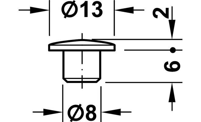 Заглушка для вдавлювання у глухий отвір діаметром - 8 мм, виготовлена з дуба. Розміри заглушки: діаметр голівки 13 мм, товщина голівки 2 мм, діаметр ніжки 8 мм, висота ніжки 6 мм.