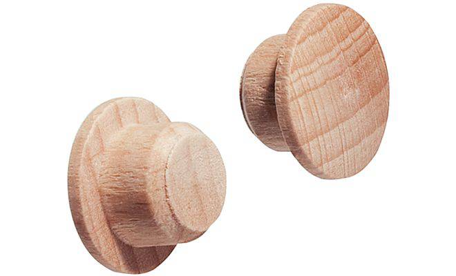 Заглушка для отвору діаметром 10 мм, виготовлена з дуба. Розміри заглушки: діаметр голівки 15 мм, товщина голівки 2 мм, діаметр ніжки 10 мм, висота ніжки 6 мм.