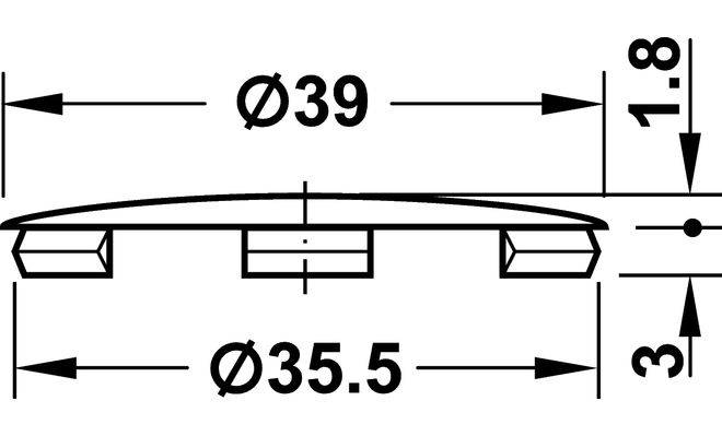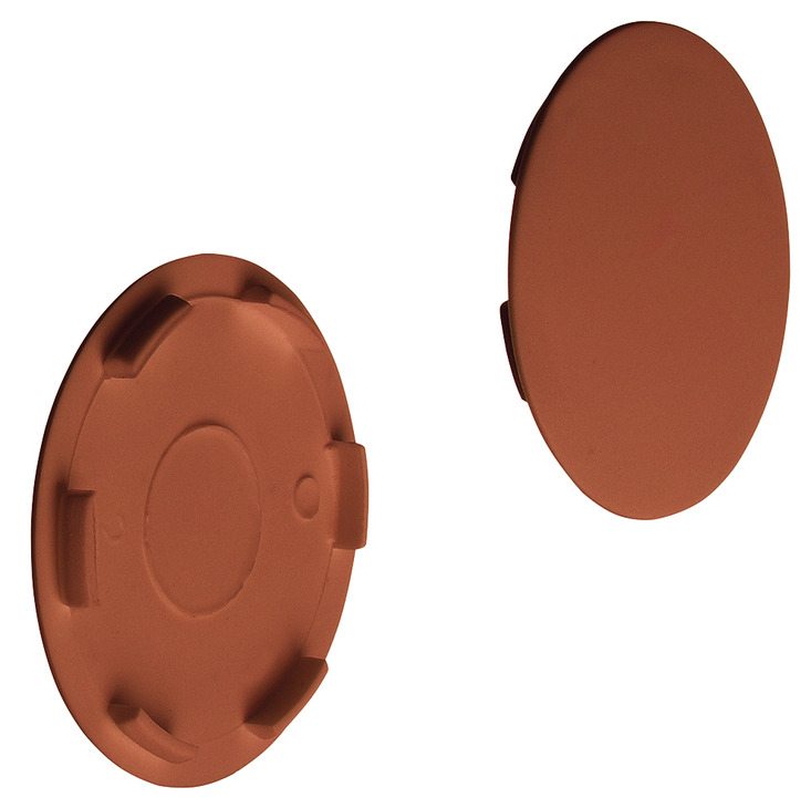 Заглушка для корпусу стяжки MAXIFIX, для вдавлювання в глухий отвір діаметром 35 мм, виготовлена з пластмаси коричневого кольору. Розміри заглушки: діаметр голівки-39мм; товщина голівки-1,8мм; довжина ніжки-3мм; діаметр ніжки -35мм.