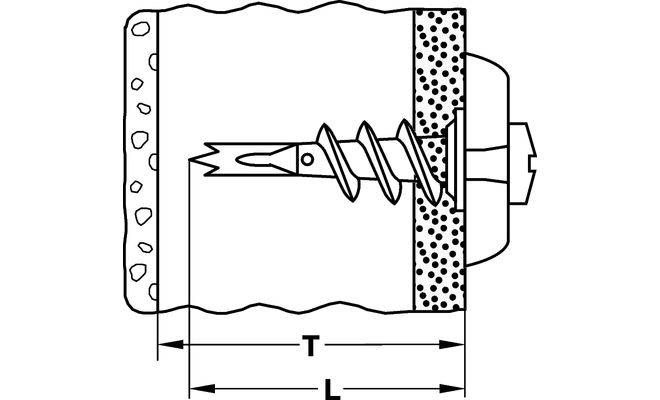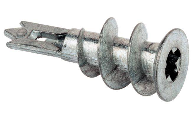 Самонарізний металевий дюбель для гіпсокартону GKM, з механічним блокуванням. Дюбель призначений для дерева та ДСП, для гвинтів Ø 4-5 мм, довжина 31 мм, діаметр голівки 13 мм.