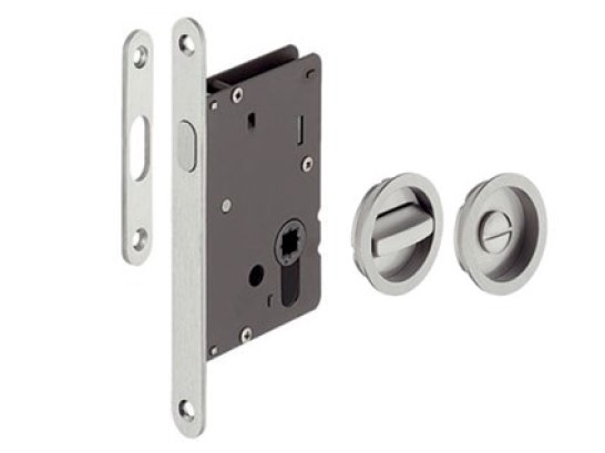 Замок для розсувних дверей WC латунь нікельований, матовий 50x16 91126084