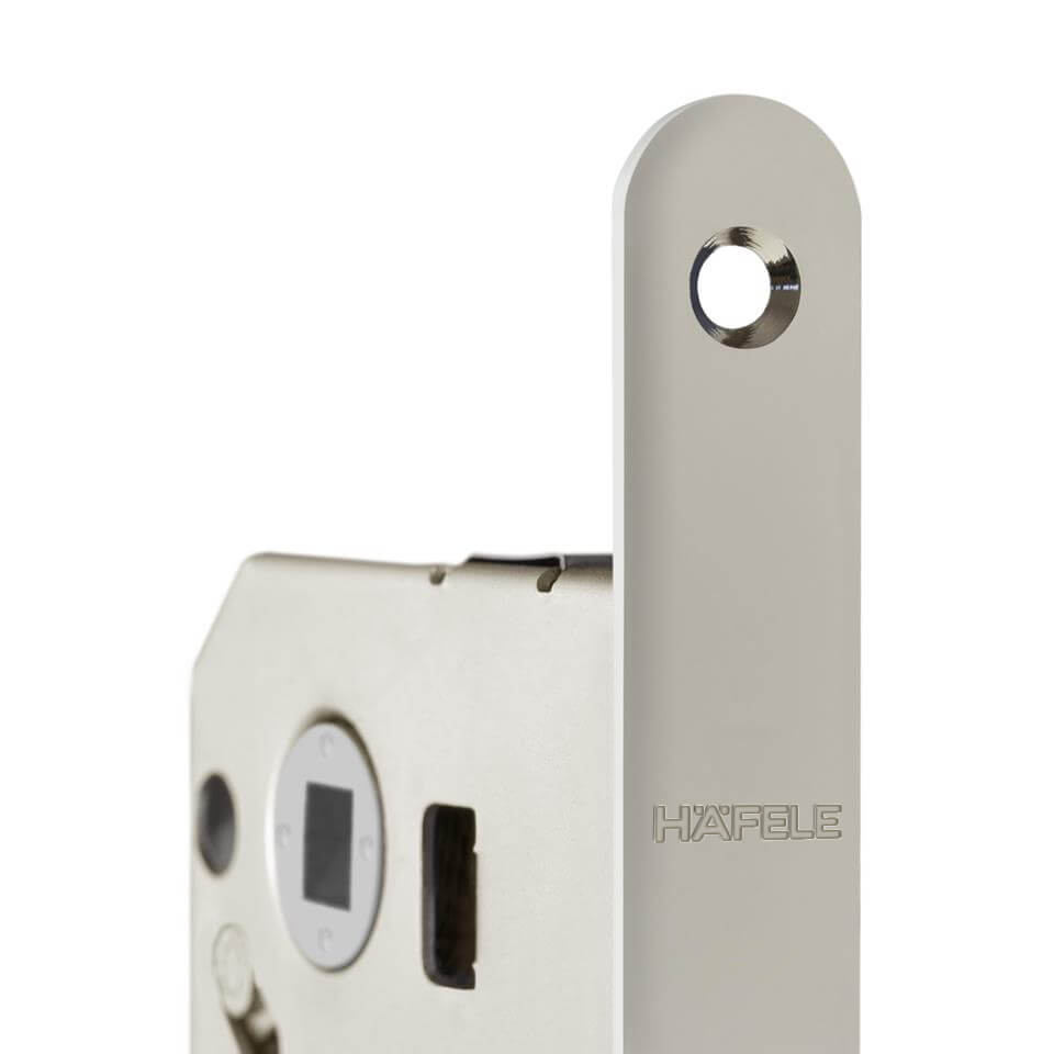Лицьова планка магнітного замка закруглена. Лицьова планка: сталь, колір / покриття: нікельована полірована. Розмір під чотиригранний штифт дверних ручок: 8 х 6 мм. Розмір під чотиригранний штифт нижньої блокування: 8 х 6 мм. Ширина лицьової планки магнітного замка: 18 мм. Висота лицьової планки магнітного замка: 196 мм. Глибина врізки магнітного замка: 75 мм. Ригель замка з вбудованим магнітом. Монтаж шляхом врізання.
