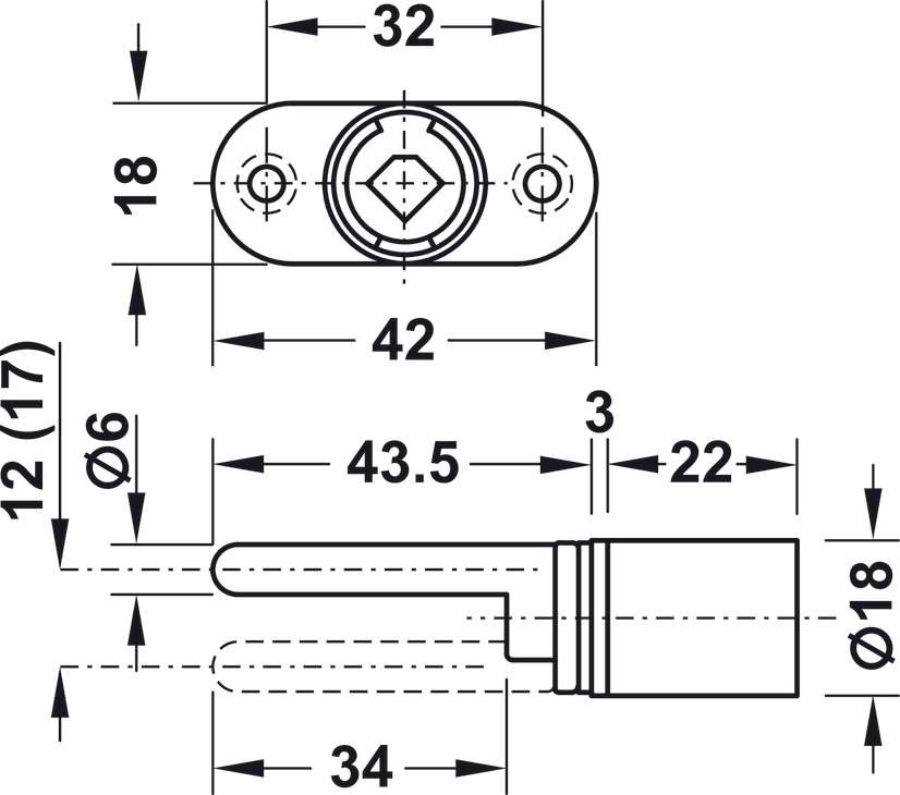 Меблевий замок центральний поворотний Hafele Symo 12 мм d18 мм чорний 23498300