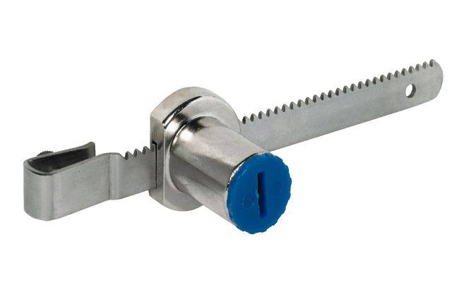 Замок підходить для вкладних розсувних дверей зі скла: рейка з зубцями затискається ззаду скляних дверей. Після цього замок насаджується, блокуючись на зубчастій рейці. Щоб розблокувати замок, його потрібно стягнути з зубчастої рейки і прибрати в сторону.