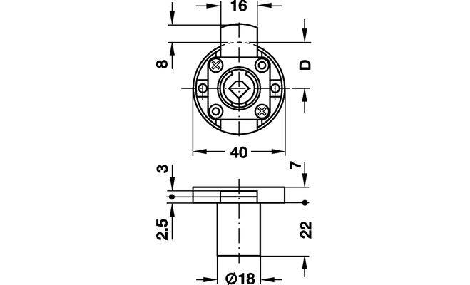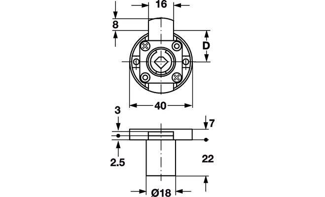 Технічні характеристики Замок SYMO для шухляди цамак 22мм D18 мм під шуруп 23028620