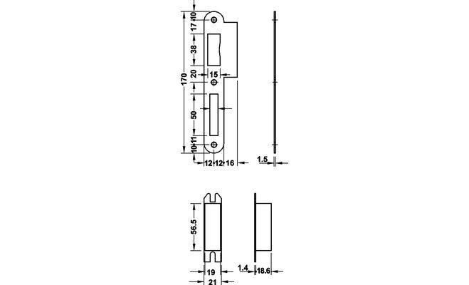 Технічні характеристики Замок врізний К3 PC лівий - правий латунь полірований PVD 20/55/72 (2) U з відповідною планкою 91102152