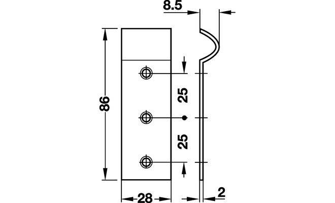 Технічні характеристики Запірний гачок 28x85x2 мм оцинкований 38064930