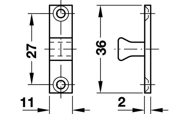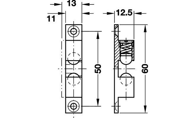 Матеріал: нержавіюча сталь, засувка і сполучна деталь: латунь. Монтаж: шляхом пригвинчування. Можливість настройки: Утримуюче зусилля через плоске лезо. Висота клямки 60 мм. Латунь, без покриття.