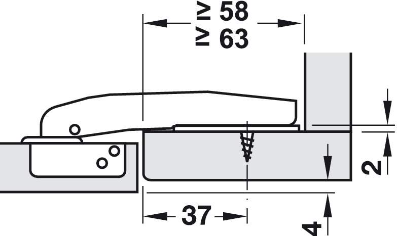 Така петля належить до числа чотирьох шарнірних. Вона має автоматику, що закривається, і призначена для добротних брусків. Кріплення чашки здійснюється шляхом загвинчування. Глибина свердління – 12,5 мм під шарнірну чашку.