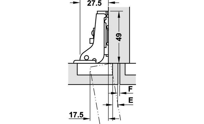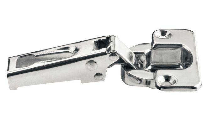Завіса меблева прихована, виготовлена з нержавіючої сталі. Поверхня полірована. Кут розкриття – 100 градусів. Слугуватиме довго та надійно завдяки високій якості використаних матеріалів.
