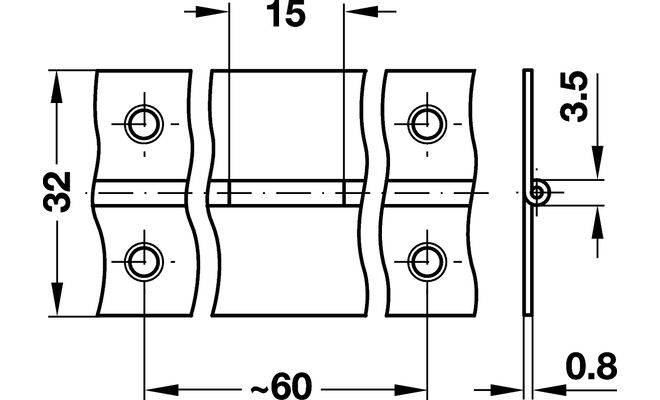 Технічні характеристики Завіса рояльна нержавіюча сталь 32 x 0,8 мм (1.4301) 3.5 м 35104003