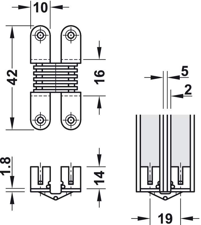 Опис Завіса меблева прихована VICI 10 x 42 мм шарнірна кут 180 для товщини 14-16 мм сталева латунована 34105510