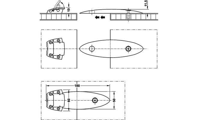 З’єднувальний елемент Häfele для столів, розмір 175×60 мм, колір срібний.