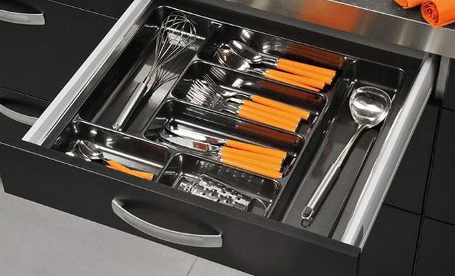 З'єднуючий профіль з можливістю вкорочення до потрібного розміру, призначений для з'єднання декількох вставок для столових приборів по ширині, для отримання індивідуальних за розміром секцій. Профіль виготовлений з пластмаси сірого кольору. Довжина з'єднуючого профіля 505 мм.