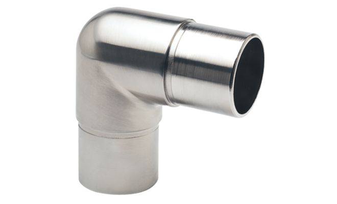 З'єднувач труби кутовий 90°, виготовлений зі сплаву цамаку, кольору латуні. Діаметр 51 мм. З M8 внутрішнім різьбленням.